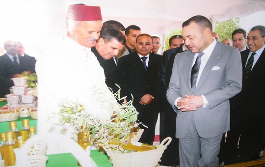 جلالة الملك محمد السادس خلال زيارته لإقليم تاونات سنة2010 يتحدث مع الحاج الحمامي رئيس وحدة الزيتون