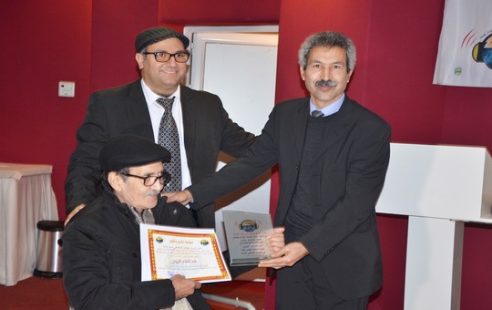 إدريس الوالي يسلم هدية تذكارية للكاريكاتوريست المريني بطنجة