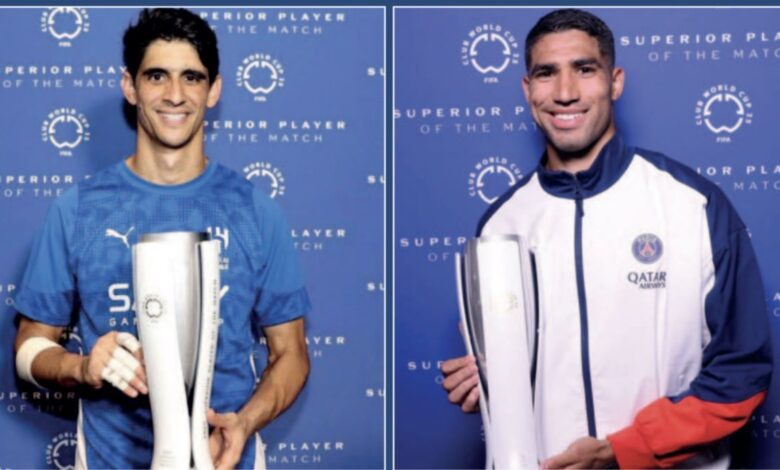 ويتواجد ضمن القائمة، الثنائي المغربي الحارس الدولي (إبن تاونات) باسين بونو، المرشح لجائزة أفضل حارس مرمى، واللاعب (إبن القصر الكبير) أشرف حكيمي، المتواجد ضمن المرشحين لأفضل مدافع، وأفضل لاعب في العالم، نظير ما قدموه رفقة فرقهم والمنتخب الوطني المغربي، خلال المباريات التي خاضوها طوال الموسم.