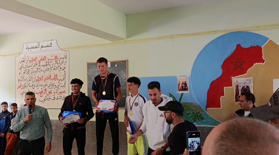 وفي ختام النشاط، تم توزيع جوائز وشواهد تقديرية على الفائزين والمشاركين، بحضور البطل سفيان البقالي الذي حرص على تهنئتهم فردًا فردًا، والتقاط صور تذكارية معهم، مما خلق لحظات مؤثرة ستبقى راسخة في ذاكرة التلاميذ.
