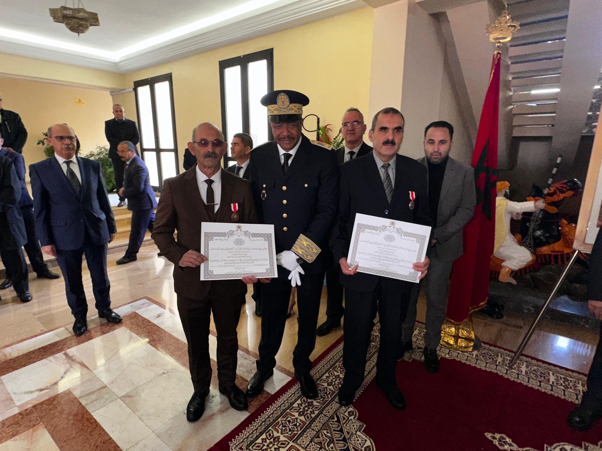 ويتعلق الأمر بكل من محمد بوليف متصرف ممتاز لوزارة الداخلية بالكتابة العامة للعمالة المنعم عليه بوسام الاستحقاق الوطني من الدرجة الأولی ومحمد الغماري مساعد تقني من الدرجة الأولى بالكتابة العامة لعمالة إقليم تاونات المنعم عليه بوسام الاستحقاق الوطني من الدرجة الثانية.