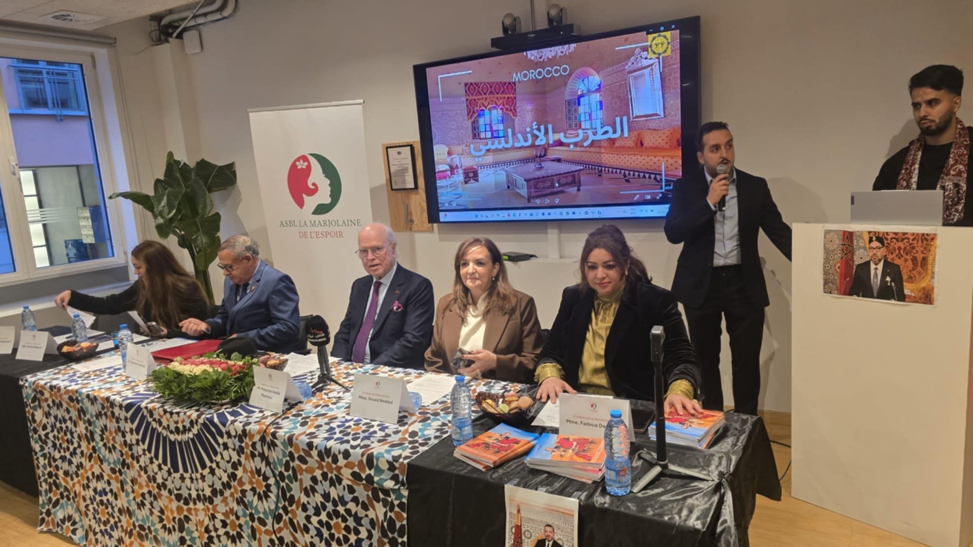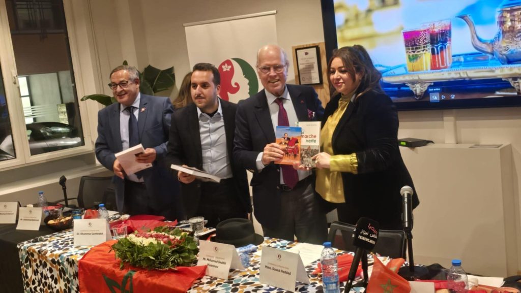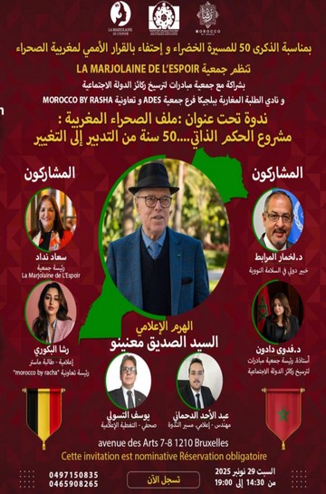 بروكسيل (بلجيكا)/متابعة خاصة:”تاونات نت”//- بمناسبة الذكرى 50 من المسيرة الخضراء المظفرة؛شهدت العاصمة البلجيكية بروكسيل، خلال نهاية الأسبوع، انعقاد ندوة فكرية متميّزة حول قضية الصحراء المغربية بعنوان “مشروع الحكم الذاتي… 50 سنة من التدبير إلى التغيير”، وذلك بمبادرة من جمعية La Marjolaine de l’Espoir بشراكة مع كل من مبادرات ركائز الدولة الاجتماعية (ترأسها عضو منتدى كفاءات إقليم تاونات الأستاذة فدوى دادون) ونادي الطلبة المغاربة ببلجيكا وتعاونية Morocco by Racha(التي ترأسها إبنة تاونات الإعلامية رشا البكوري) ، إضافة إلى فرع جمعية ADES.. وقد قام بتسيير هذه الندوة الهامة الإعلامي والمهندس المغربي عبد الأحد الدحماني (عضو منتدى كفاءات إقليم تاونات).