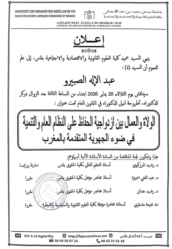 كريم باجو –تاونات:”تاونات نت”//- بعدما توج مساره الدراسي بشهادة الدكتوراه في القانون العام بكلية الحقوق ظهر المهراز بفاس الثلاثاء الماضي 20 يناير الجاري ، الموسومة ب ‘ الولاة والعمال بين إزدواجية الحفاظ على النظام العام والتنمية في ضوء الجهوية المتقدمة بالمغرب” قام عبد الإله الصبيرو ابن دوار الطرقية بجماعة عين مديونة بتاونات بكتابة تدوينة مطولة على حسابه الخاص بالفيسبوك يستحضر فيها رحلته المعرفية من ” المسيد ” وصولا إلى نيله الشهادة الجامعية الأعلى في الرحلة الدراسية ، متذكرا كلمات ولحظات لشخصيات كانت لها الفضل في تحفيزه على المُضي قدما في درب العلم والمعرفة وفي إطار ربطه الحاضر بالماضي وإستشرافا للمستقبل.
