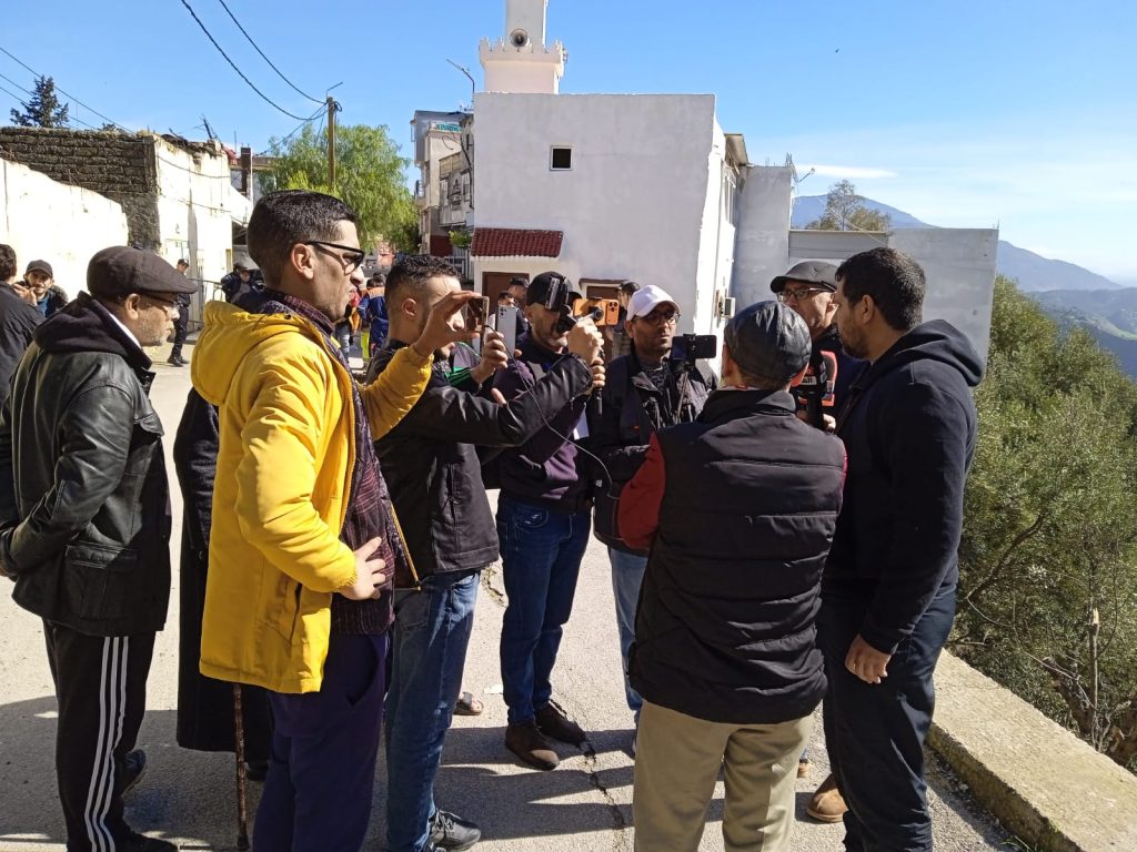 كريم باجو –تاونات:”تاونات نت”//-أقامت جمعية احجر دريال للتنمية بتاونات ندوة صحفية يوم فاتح من فبراير الجاري أمام المنازل التي تساقطت واحدة منهم ، وبقي الآخرين على شفى الإنهيار. وقد حضرت ‘ صدى تاونات ‘ و ‘ تاونات نت بدعوة من الجمعية ، حيث صرح رئيس الجمعية أزهر لحلو قائلا ” نشكركم كمنابر إعلامية على الحضور والتغطية ونعلن تضامنا مع آل الشارف ونتمنى من الله تعالى أن يعوضهم خير ، وتواصلنا معكم من أجل التطرق إلى السبب الرئيسي للإنهيار”.