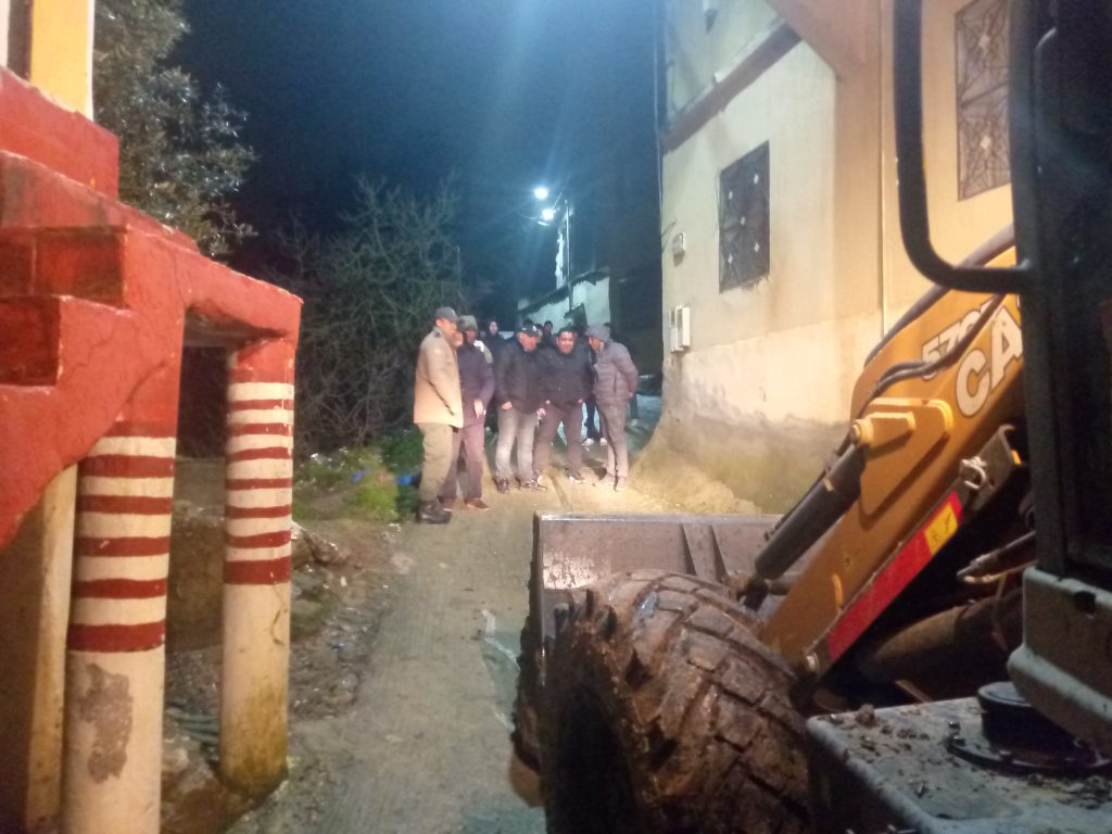 كريم باجو:”تاونات نت”//- رافقت ‘ صدى تاونات ‘ و ‘ تاونات نت ‘ ليلة 06 فبراير الجاري ؛ قائد الملحقة الإدارية الثانية والقوات المساعدة وأعوان السلطة وجرافة تابعة لمجموعة جماعات الترابية التعاون ، لهدم البنايات الطينية وغير الطينية المهجورة والآيلة للإنهيار بكل من أحياء الدشيار واحجر امطاحن بمدينة تاونات حيث قضت جرافة ساعات طوال في الهدم .