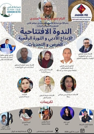 وتضمن برنامج الندوة وتسيرها الروائية والشاعرة غزلان شرفي، مداخلة لإدريس الذهبي أستاذ التعليم العالي بفاس، حول موضوع “الإبداع الأدبي في ظل الألفية الثالثة”، فيما حاضر زميله محمد أمقران الباحث في تاريخ المغرب، في موضوع “تحديات وإكراهات الإبداع الأدبي في ظل الثورة الرقمية”.