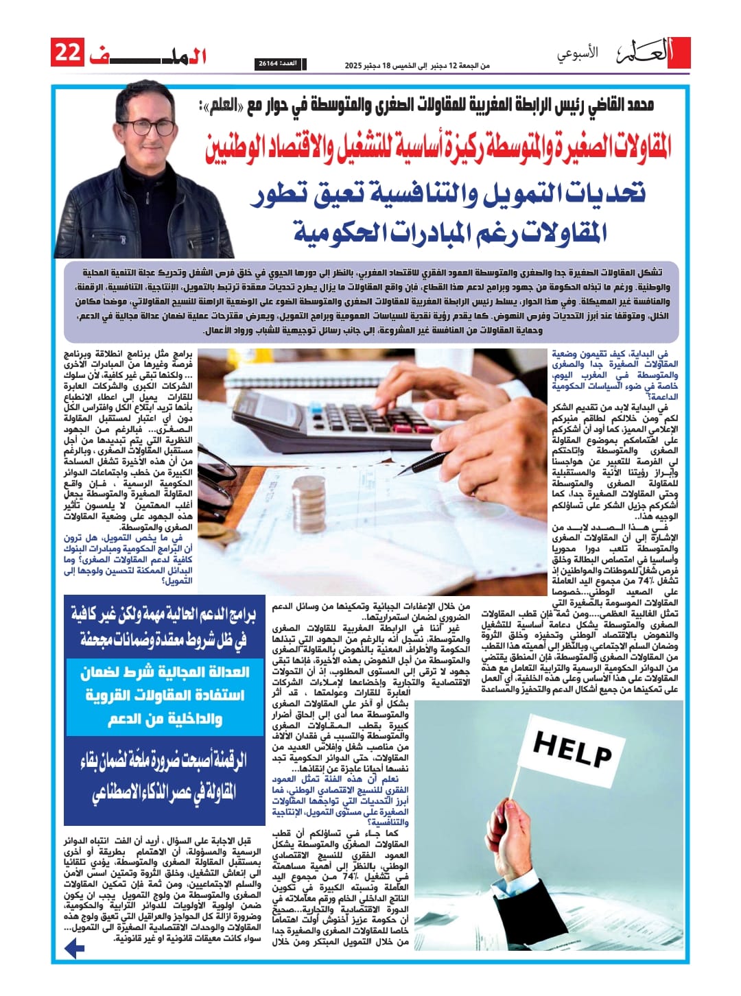هذا ما صرح به إبن تاونات محمد القاضي رئيس رابطة المقاولات الصغرى والمتوسطة لجريدة “العلم”