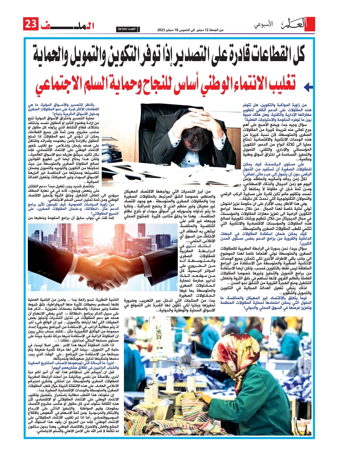 وهذا هو نص الحوار ، ننقله بأمانة كما جاء في جريدة “العلم” عددها الاسبوعي المؤرخ في 12-18دجنبر 2025 عدد 26164: