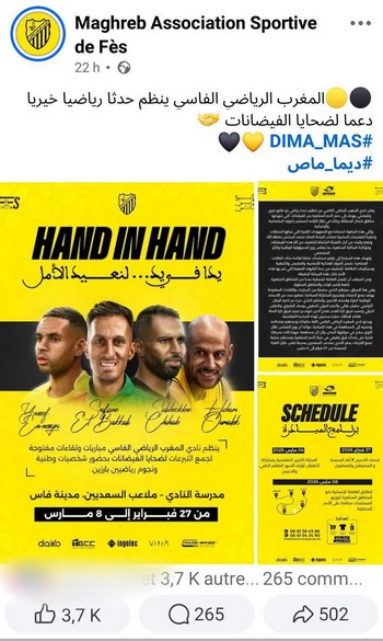 وفي بلاغ لنادي المغرب الفاسي عن هذه المبادرة جاء فيه ” تأتي هذه الخطوة انسجاما مع المجهودات الكبيرة التي تبذلها السلطات وتنفيذا للتعليمات السامية لصاحب الجلالة الملك محمد السادس حفظه الله ، من أجل التعبئة الشاملة للتخفيف من آثار هذه الفيضانات ومواكبة الساكنة المتضررة، بما يعكس روح المسؤولية الوطنية والتآزر المجتمعي “.