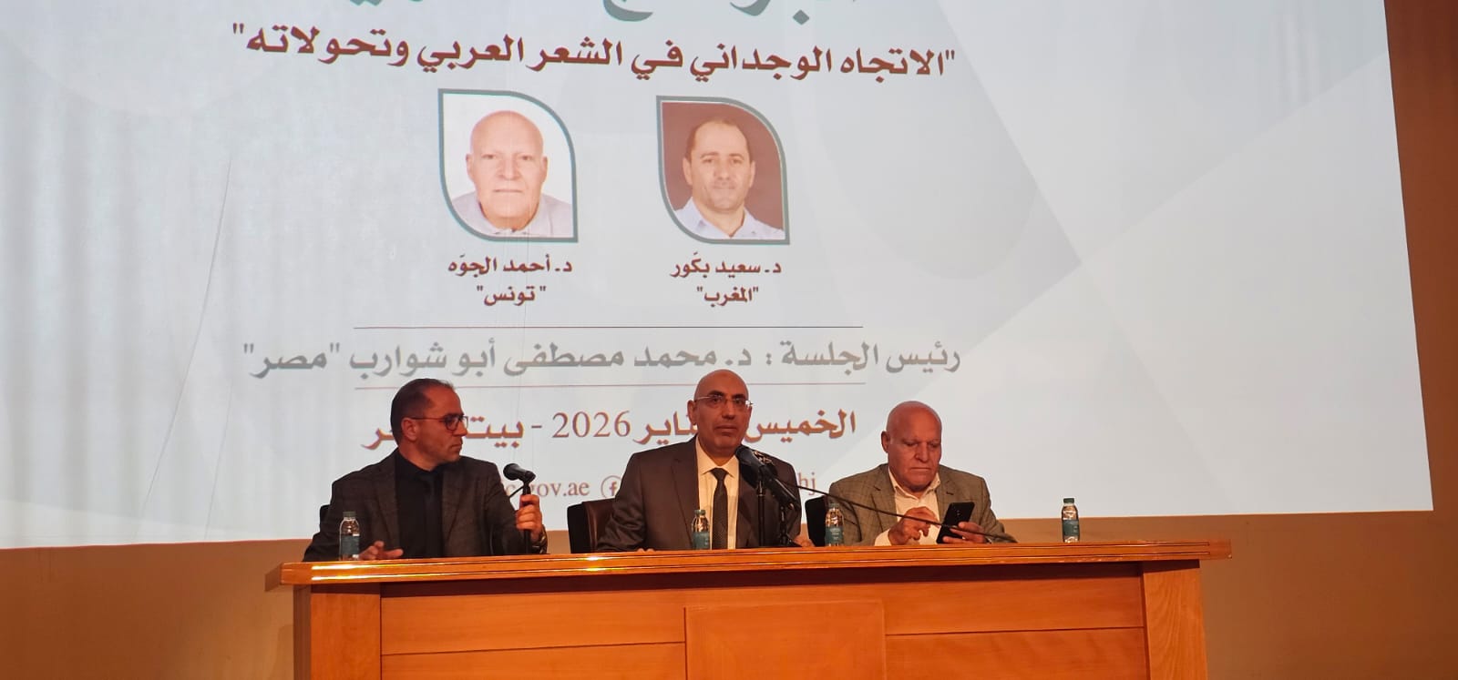 وناقشت الندوة الفكرية المصاحبة لمهرجان الشارقة، موضوعاً نقدياً لافتاً تحت عنوان “الاتجاه الوجداني في الشعر العربي وتحولاته”، وأقيمت (الندوة) على جلستين في بيت الشعر في مدينة الشارقة، حيث تحدث في الجلسة الأولى د. سعيد بكور (المغرب)، و د. أحمد الجوّة (تونس)، وترأسها الناقد المصري د. محمد مصطفى أبو الشوارب. أما الجلسة الثانية فقد شارك فيها: د. محمود الضبع ( مصر)، و د. عمر العامري ( الأردن)، وترأسها الناقدة لامعة العقربي (تونس)بحضور عبد الله بن محمد العويس رئيس دائرة الثقافة في الشارقة، والاستاذ محمد إبراهيم القصير مدير إدارة الشؤون الثقافية في دائرة الثقافة، عدد كبير من الشعراء والنقاد والمهتمين بالشأن النقدي.