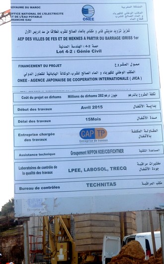 تجري اشغال انجاز مشروع تعزيز تزويد مدينتي فاس ومكناس بالماء الصالح للشرب انطلاقا من سد ادريس الأول منذ شهر ابريل 2015 ، مشروع ضخم موله كل من المكتب الوطني للكهرباء والماء الصالح للشرب والوكالة اليابانية للتعاون الدولي، عملية انجازه تجري على عدة أشطر، ويهم الشطر 1 – 2، مد قنوات الجر المائي ما بين مأخذ المياه بسافلة سد ادريس الاول وخزان المياه بكلفة مالية قدرها 159 مليون درهم ، تمتد فيه الاشغال على مدى 24 شهرا. وبالموازاة مع ذلك يجري انجاز الشطر 2 – 4 على مدى 15 شهرا، بكلفة مالية تقدر ب 282 مليون درهم.